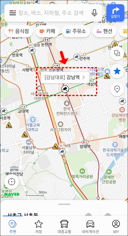 7) 상세 경로에서 원하는 구간 CCTV로 확인 가능합니다.(CCTV 아이콘 클릭)