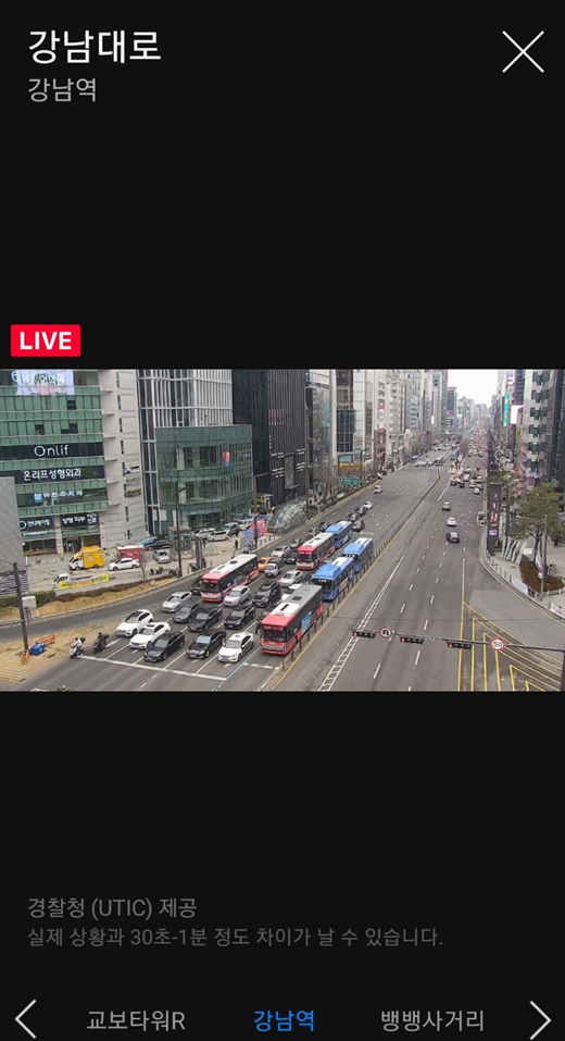 2. 원하는 구간 CCTV아이콘을 클릭 ‣ 실시간 교통상황을 확인할 수 있습니다.