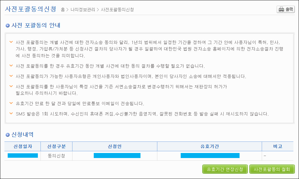 · 신청에 앞서 주의해야 할 점은 전자소송 회원가입과, 사전포괄동의는 다릅니다. 간혹 회원가입만 해도 전자소송 진행이나 법원에서 오는 등기 우편물을 전자로 받는다고 아는 분들이 계신데요 꼭 회원가입과 별개로 사전포괄동의를 따로 해주어야 합니다.